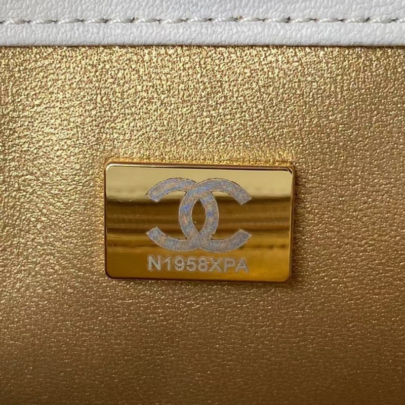 Chanel 23C AS1786 Mini Square Pearl Embossed Flap Bag Antique Gold Hardware White