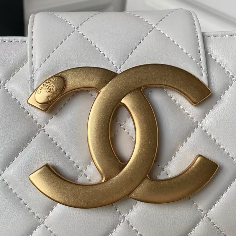 Chanel 24C AS4611 Vintage Logo Lambskin Rectangular Shoulder Bag White