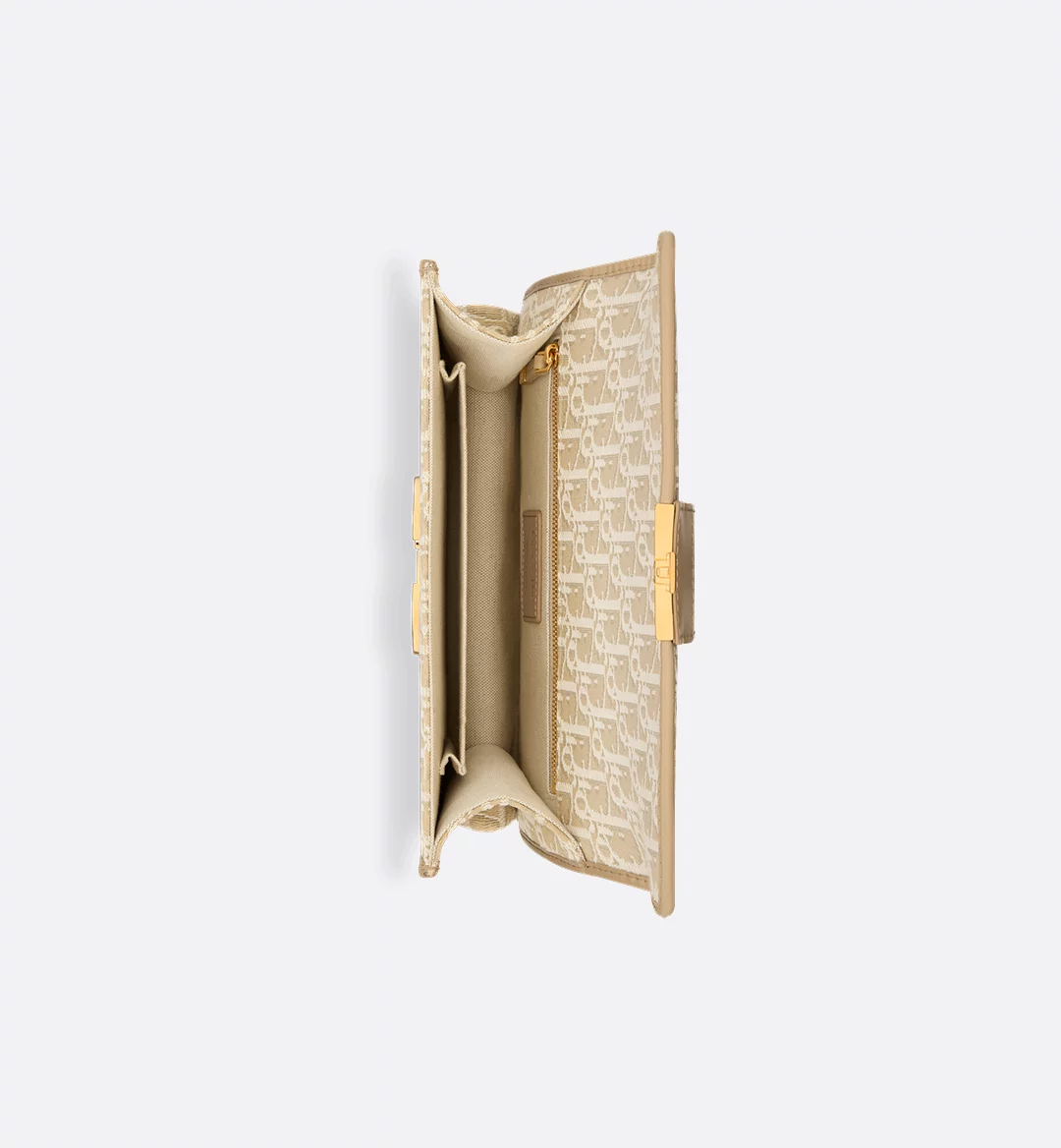 The 30 Montaigne line, inspired by the hallmark address, presents essential pieces that portray the iconic codes of the House. The bag is in natural Dior Oblique jacquard for an elegant and timeless look. The flap is embellished with an antique gold-finish metal CD clasp, inspired by the seal of a Christian Dior perfume bottle. Refined details such as an embossed 30 Montaigne signature on the back define this streamlined design. The bag features a chain that allows it to be carried by hand, worn over the shoulder or crossbody.