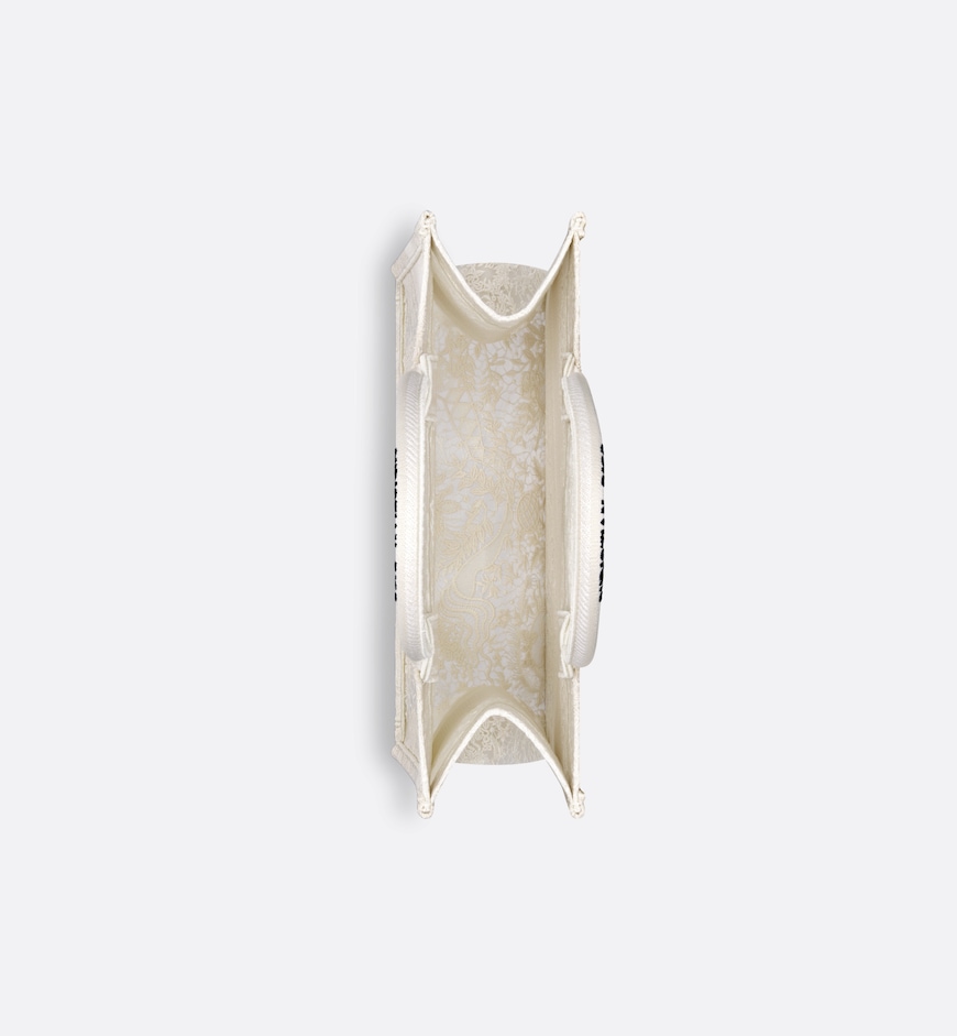 Introduced by Maria Grazia Chiuri, Creative Director of Christian Dior, the Dior Book Tote has become a staple of the Dior aesthetic. Designed to hold all the daily essentials, the style is fully embroidered with white Macramé offering a new take on the iconic House motif with the season’s signature Toile de Jouy Soleil, layering suns and crescent moons into a floral design representing the four seasons. Exemplifying House savoir-faire, the medium tote is adorned with the Christian Dior Paris signature on the front, and may be carried by hand or worn over the shoulder.