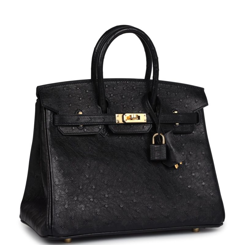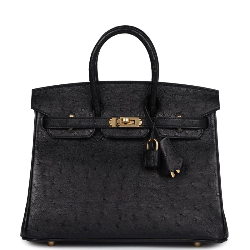 Hermes Birkin 25 Black Ostrich Gold Hardware