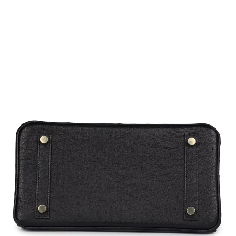 This Birkin is in Black ostrich with gold hardware and features tonal stitching,front flap, two straps withcentertoggle closure, clochette with lock and two keys, and double rolled handles.