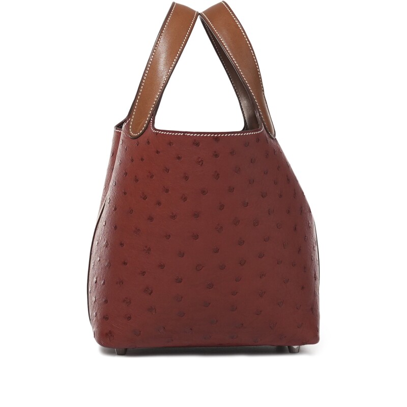 Hermès Fauve Barenia and Brique Ostrich Touch Picotin Lock 18 Palladium Hardware