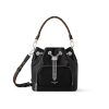 Introducing the No Way handbag from the LV Vibe collection. This modern design takes cues from the iconic Noé style, while adding a rock-inspired attitude. It is crafted from lambskin embellished with silver-toned hardware, including a gliding LV Circle that adjusts the bag opening, while also adding a decorative element. Use the front zipped pocket for keys and makeup essentials.