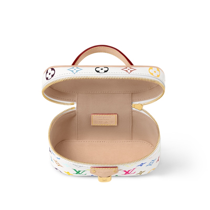 The timelessly elegant Vanity Pouch makes a spirited statement in a multicolored Monogram motif from the re-edition of the Louis Vuitton x Murakami collection, which reimagines the House’s iconic signature in the artist’s vernacular vibrant palette. Crafted from coated canvas trimmed with natural cowhide leather, it is finished with gleaming golden hardware, including a zipper fastening, a removable chain and an emblematic LV-engraved padlock.