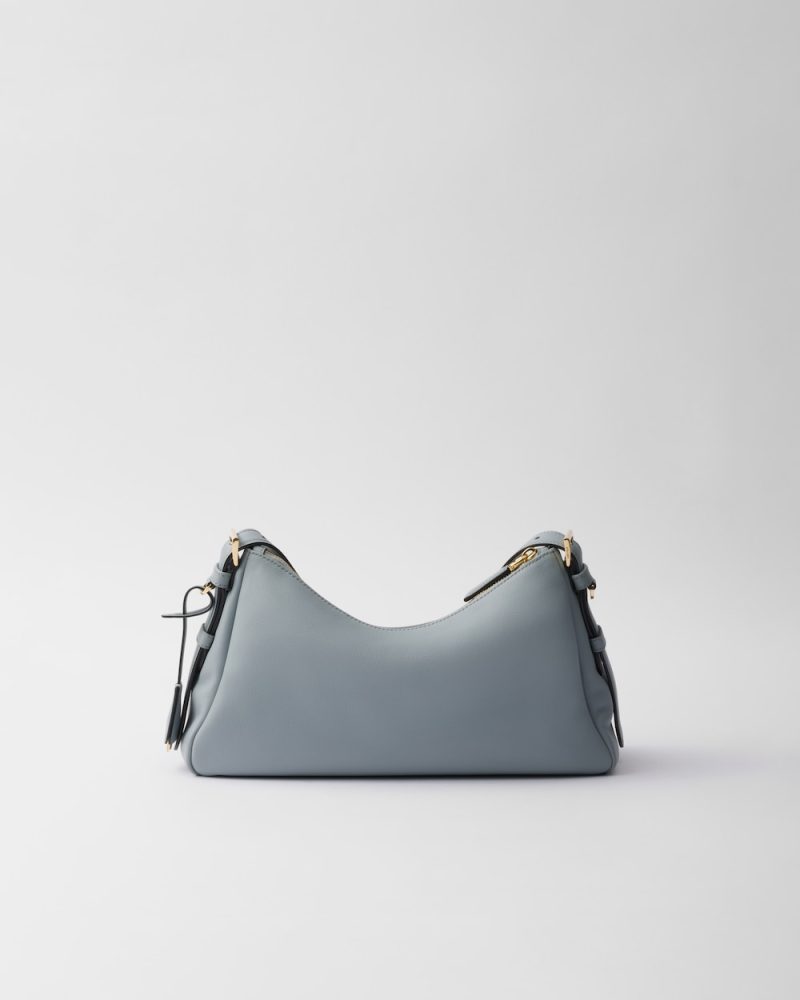 The sophisticated minimalism of the ’90s inspires the new Prada Aim??e bag. The design evokes the instinctive gesture of holding a bag with its soft silhouette, created for effortless wear on the shoulders or cross-body.