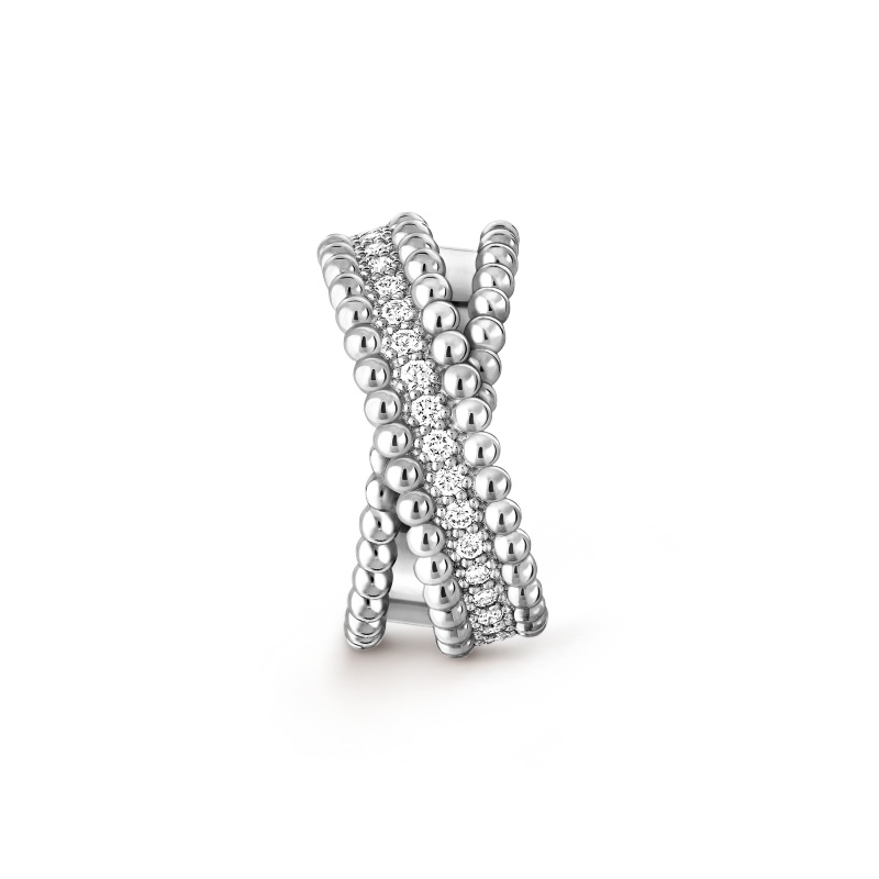 Perlee diamonds duo ring, rhodium plated 18K white gold, round diamonds; diamond quality DEF, IF to VVS
