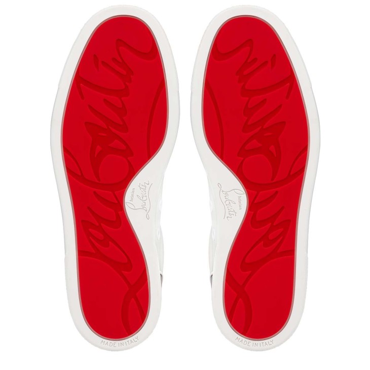 The sober and timeless Vieira sneaker enchants with its poise and meticulous details. It is mounted on a rubber sole and its sporty upper is made entirely of white calfskin. Its visible topstitching, tone-on-tone eyelets, interior nude calfskin lining, plus its elegant and discreet finishes, make it a Maison Christian Louboutin icon.