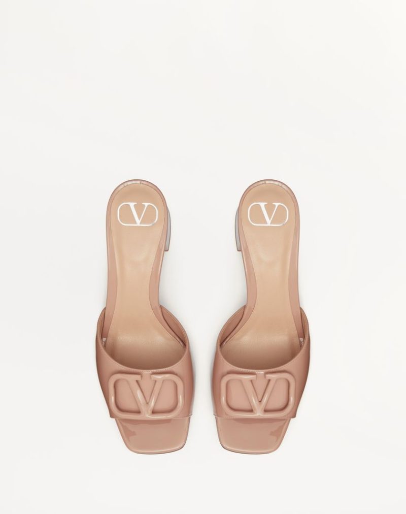 Valentino Garavani patent leather slide sandal with VLogo Signature decoration