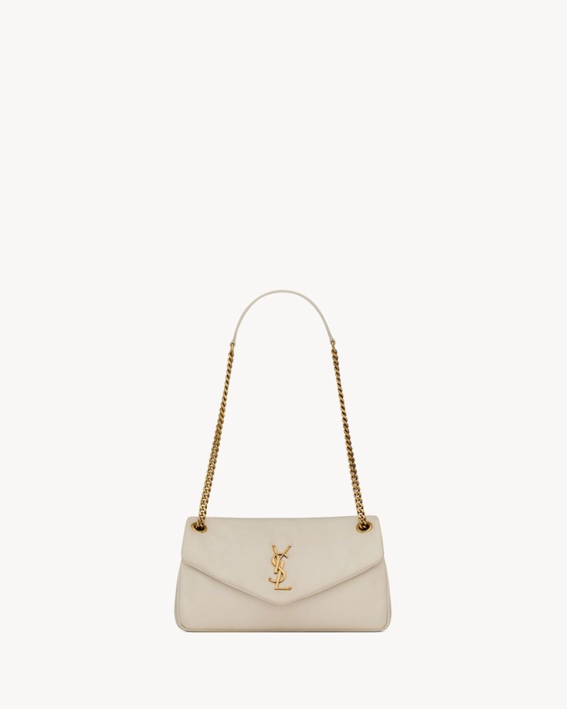 BAG decorated with THE CASSANDRE, FEATURING A LEATHER AND CHAIN CROSSBODY STRAP THAT CAN BE WORN DOUBLED FOR SHOULDER CARRY.